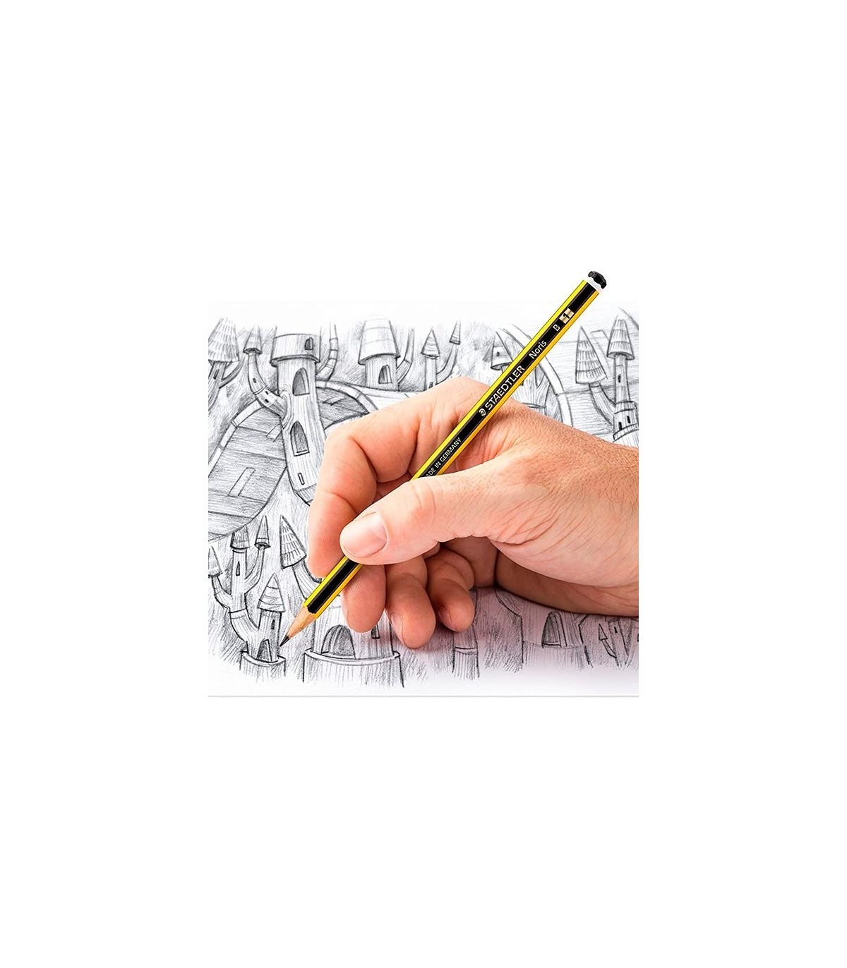 El lápiz más conocido. Lápiz especialmente resistente a la rotura gracias a la firme encoladura de la mina. Madera certificada PEFC procedente de bosques de gestión sostenible. Graducación: B