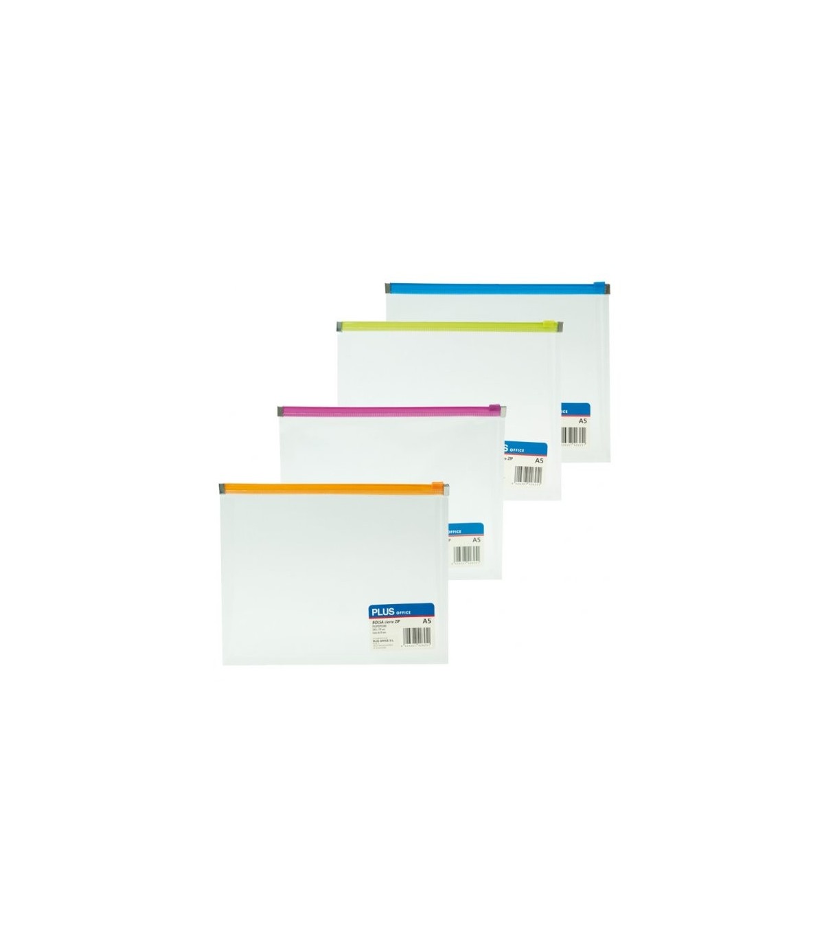 Bolsa de polipropileno, con lomo de 3 cm. para mayor cpacidad. 4 colores surtidos. Medidas: 240 x 178 mm.