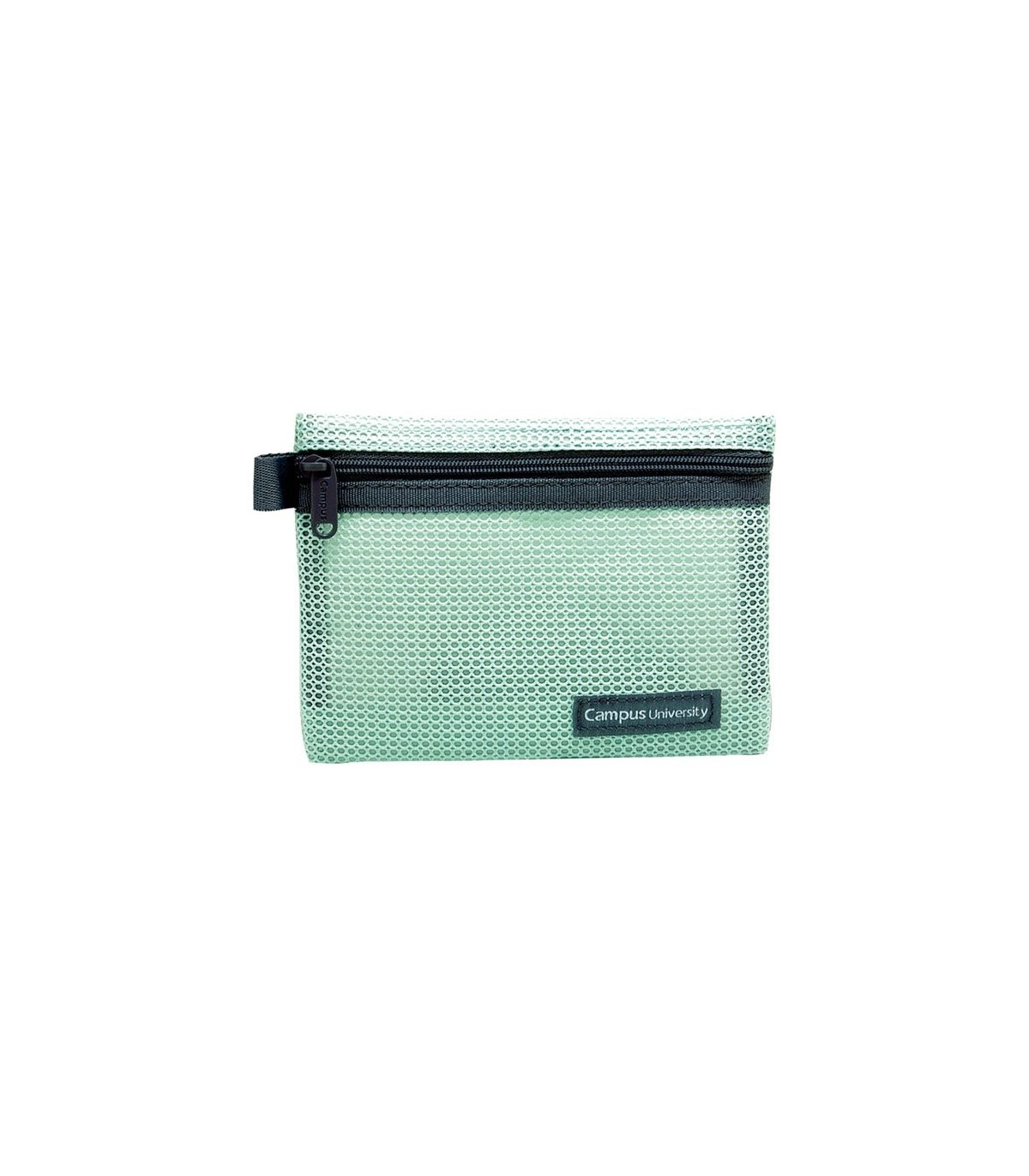 Bolsa multiusos fabricadas en tejido de rejilla con forro interior impermeable. Cierre cremallera. Medidas: 140 x 105 mm. Color: verde.
