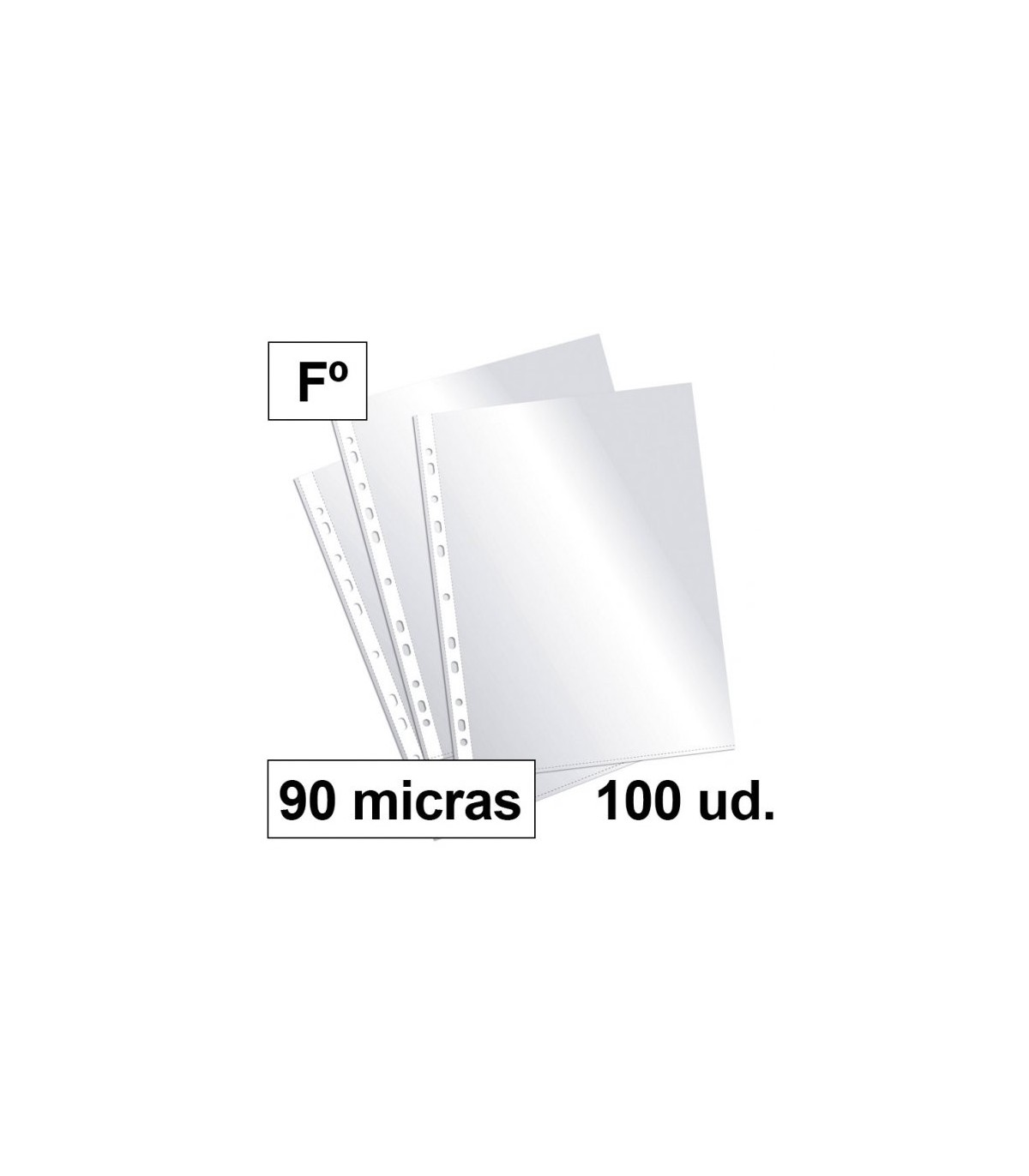 Total transparencia. Fundas multitaladro de polipropileno. Acabado en cristal. Lomo reforzado blanco. Envase de 100 unidades.