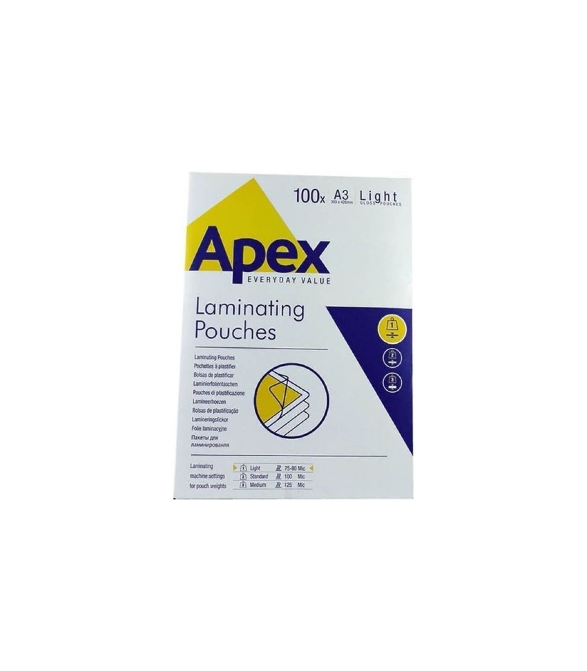 Aptas para cualquier tipo de plastificado. Grosor de 125 micras. Para formato A3. Medidas: 426 x 303 mm. Caja de 100 unidades.