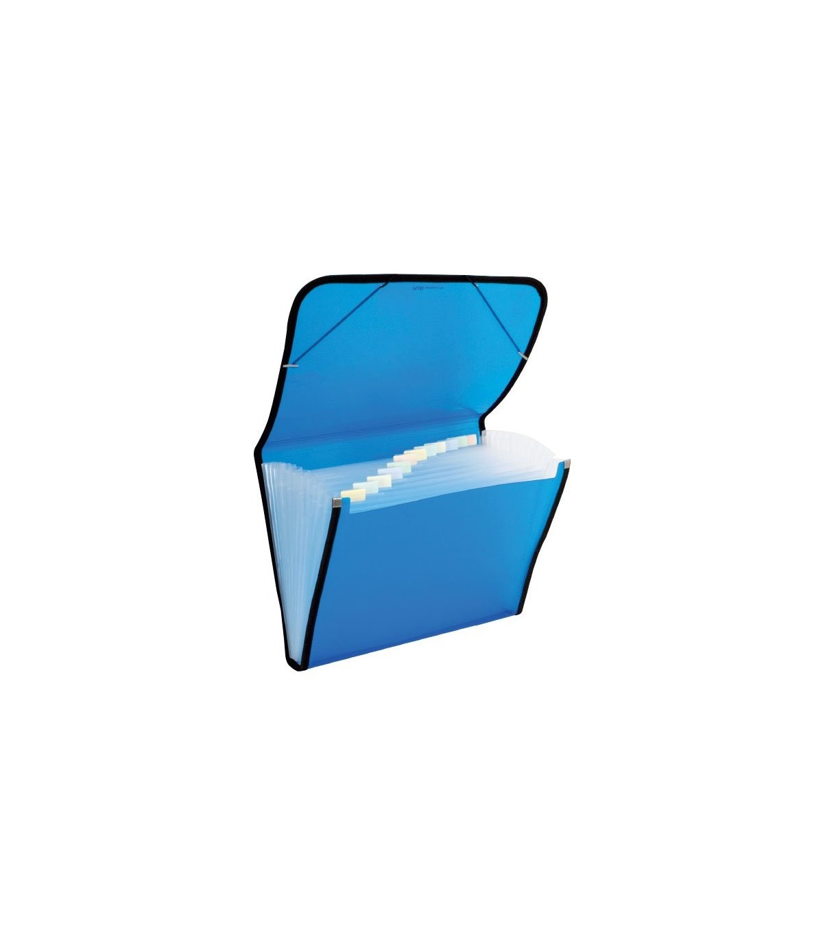 Carpeta clasificadora en polipropileno. Con doce separadores. Con gomas. Color Azul. Medidas: 330 x 240 mm.
