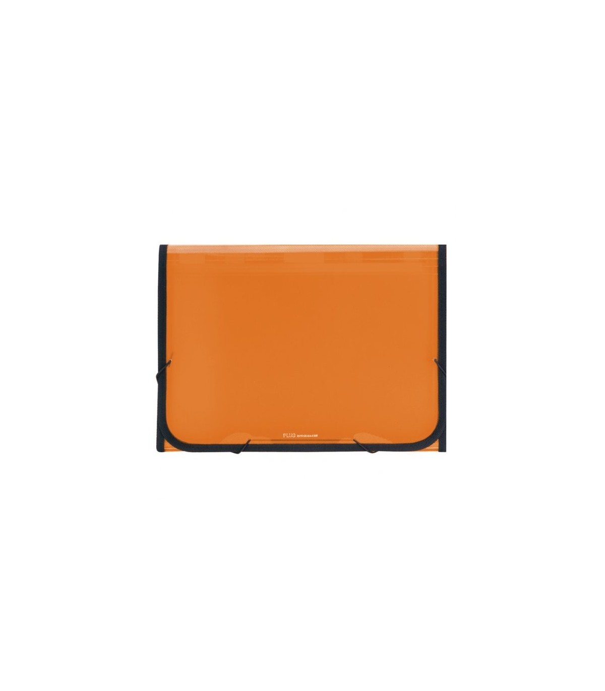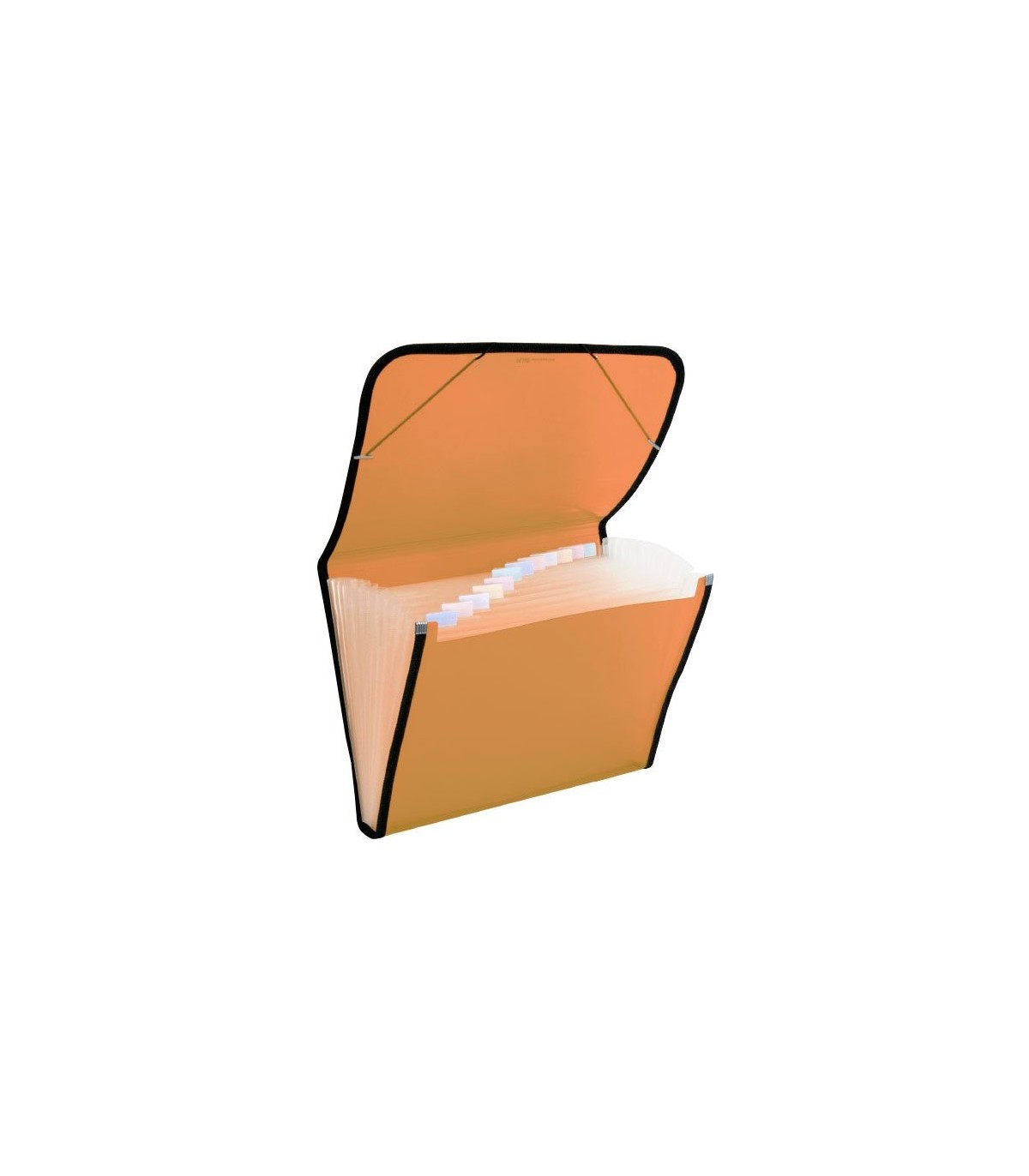 Carpeta clasificadora en polipropileno. Con doce separadores. Con gomas. Color Naranja. Medidas: 330 x 240 mm.