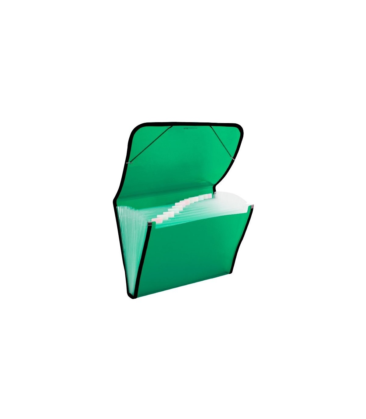 Carpeta clasificadora en polipropileno. Con doce separadores. Con gomas. Color Verde. Medidas: 330 x 240 mm.