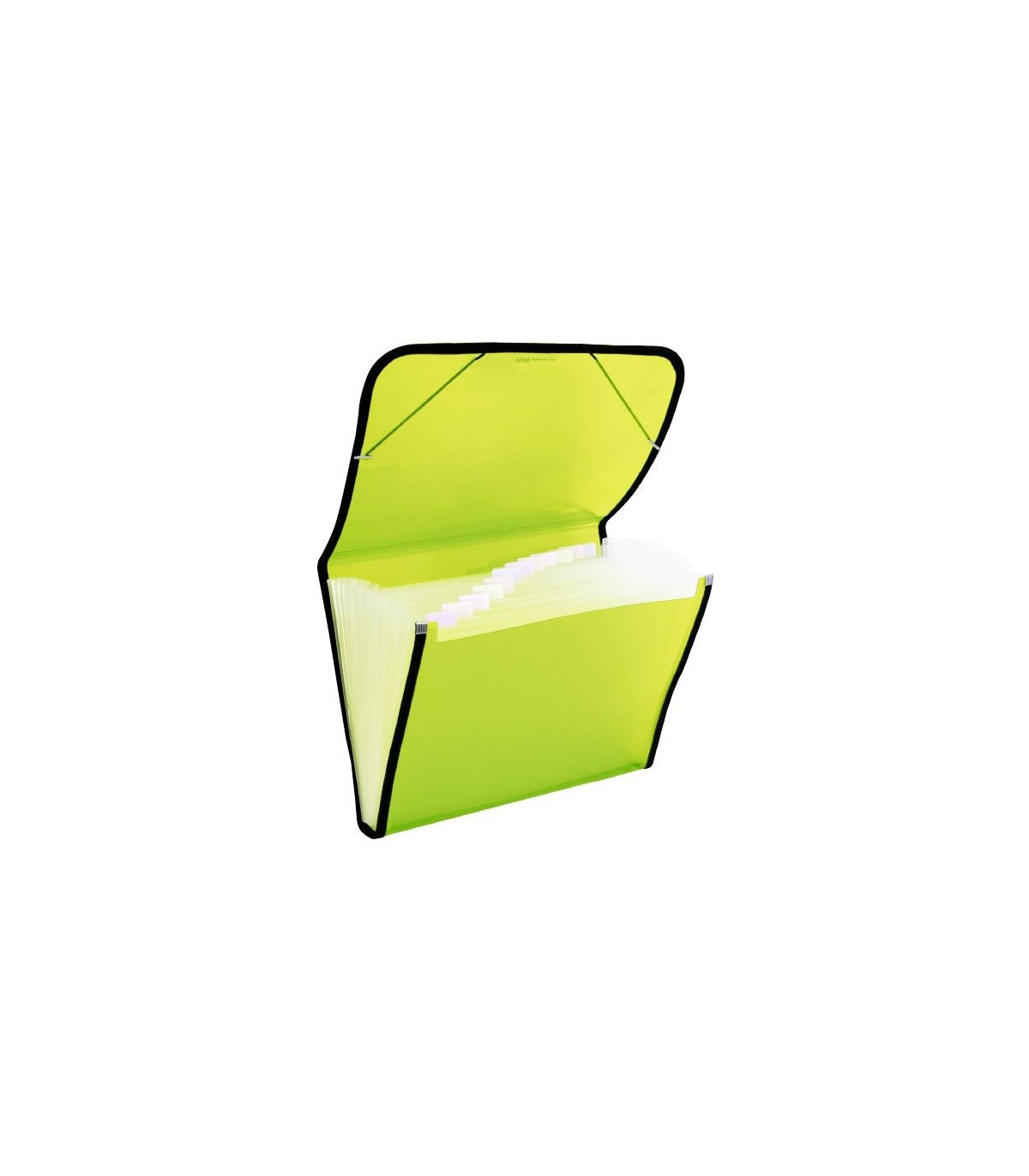 Carpeta clasificadora en polipropileno. Con doce separadores. Con gomas. Color Verde Claro. Medidas: 330 x 240 mm.