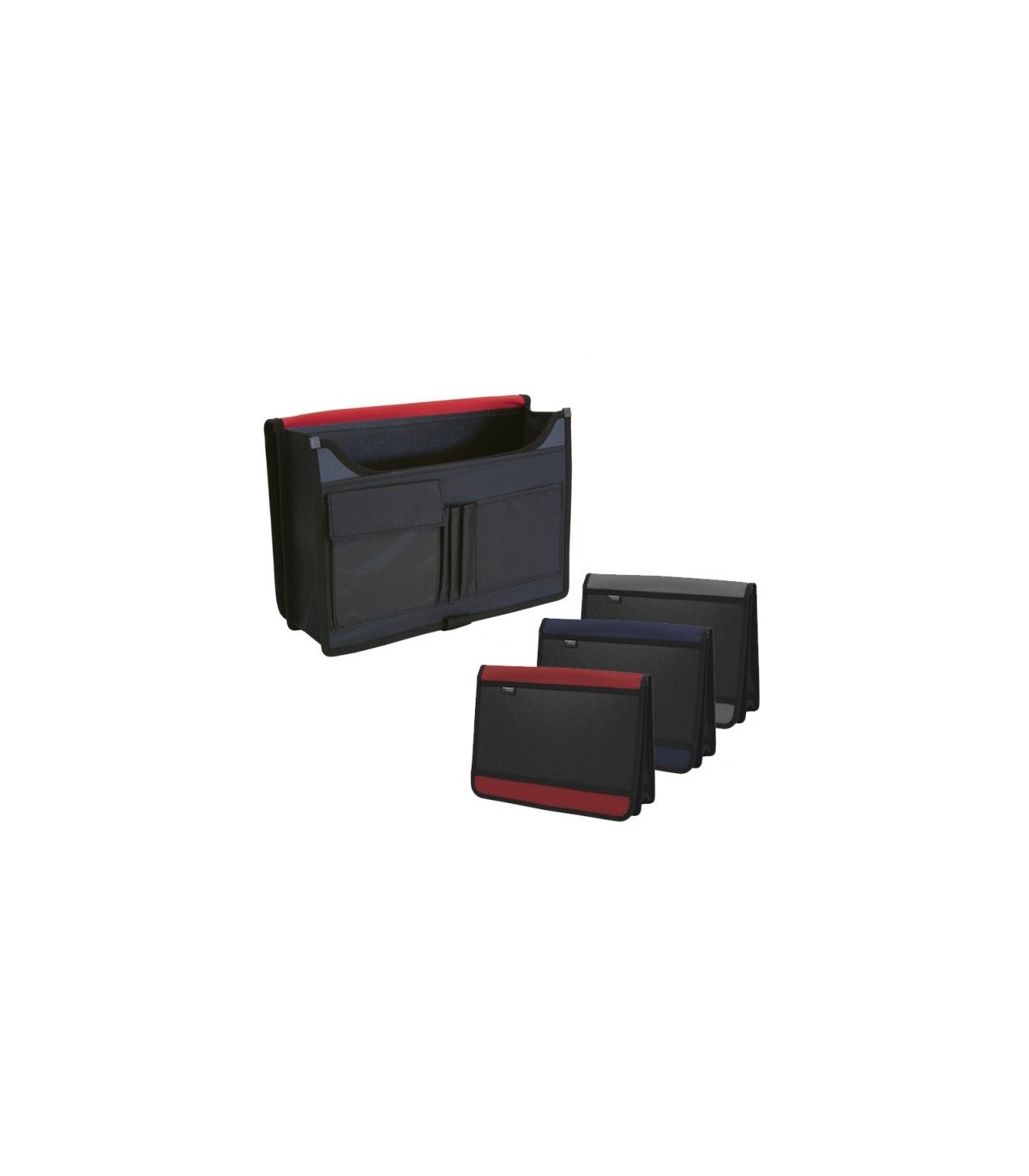 Fabricado en polipropileno rígido con aplicaciones de nylon en el lomo y tapa. Amplio espacio interior. Dispone de compartimento, bolsillo para CD y soporte para bolígrafos. Cierre con correa de velcro para una máxima seguridad. Medidas: 335 x 270 mm.