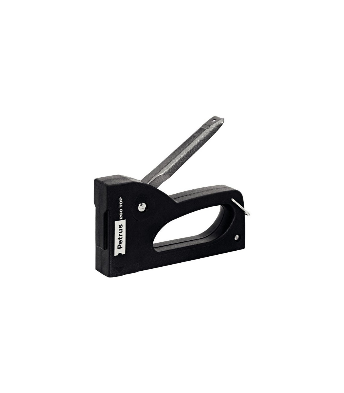 Apropiada para decoración doméstica, fijación de tejidos, cambio de tapicerías y pequeñas reparaciones. De carga posterior. Para grapas Petrus 530/4-6-8 mm.